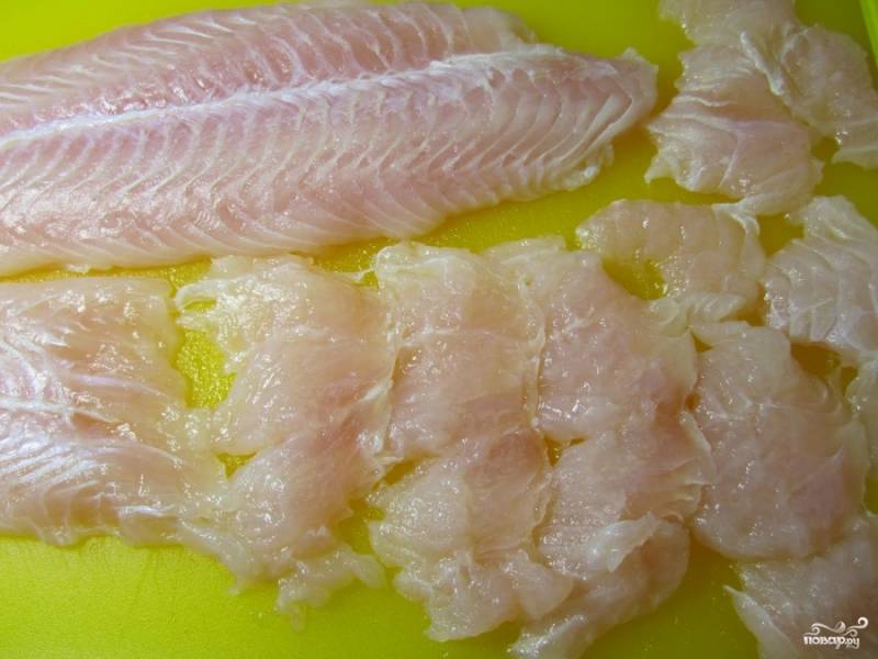 Сварите рис. Разогрейте духовку (350 градусов). Нарежьте рыбу тонкими ломтиками.