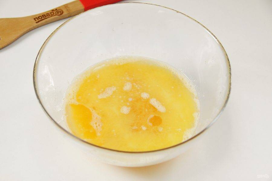 Взбейте яйца с сахаром и медом.