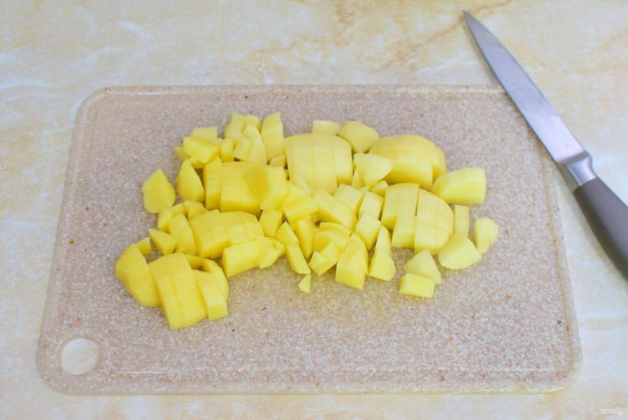 Для приготовления начинки обжарьте мелко нарезанный лук в течение 1-2 минут.