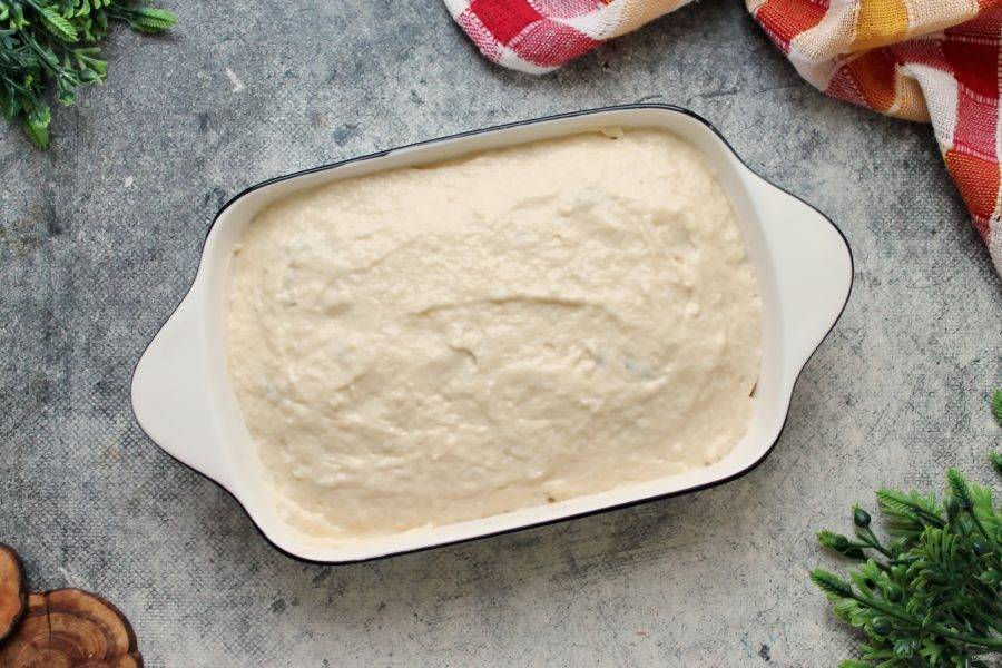 Сверху распределите оставшееся тесто, закрыв начинку.