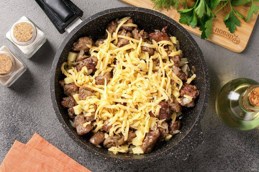 Когда начинка немного остынет, добавьте тёртый сыр.
