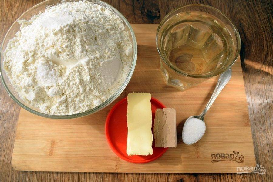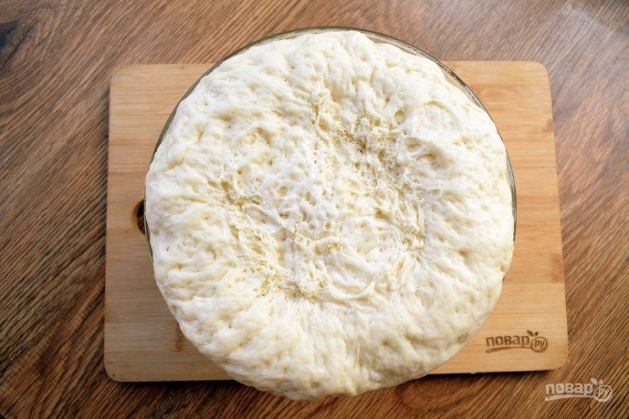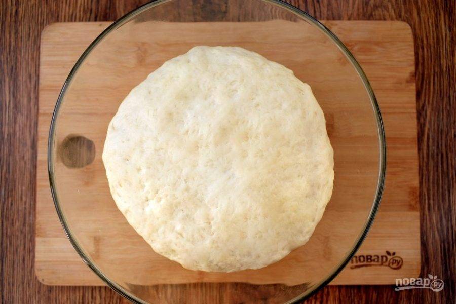 Дрожжи, сахар и столовую ложку муки разведите в теплой воде. Поставьте на 15-20 минут в теплое место до появления пенной шапочки. Влейте подошедшие дрожжи в муку, добавьте сливочное масло, соль, замесите мягкое тесто. Тесто вымешивайте не менее 10 минут. Поместите его в чистую миску, накройте и поставьте в теплое место для подхода на 1 час.
