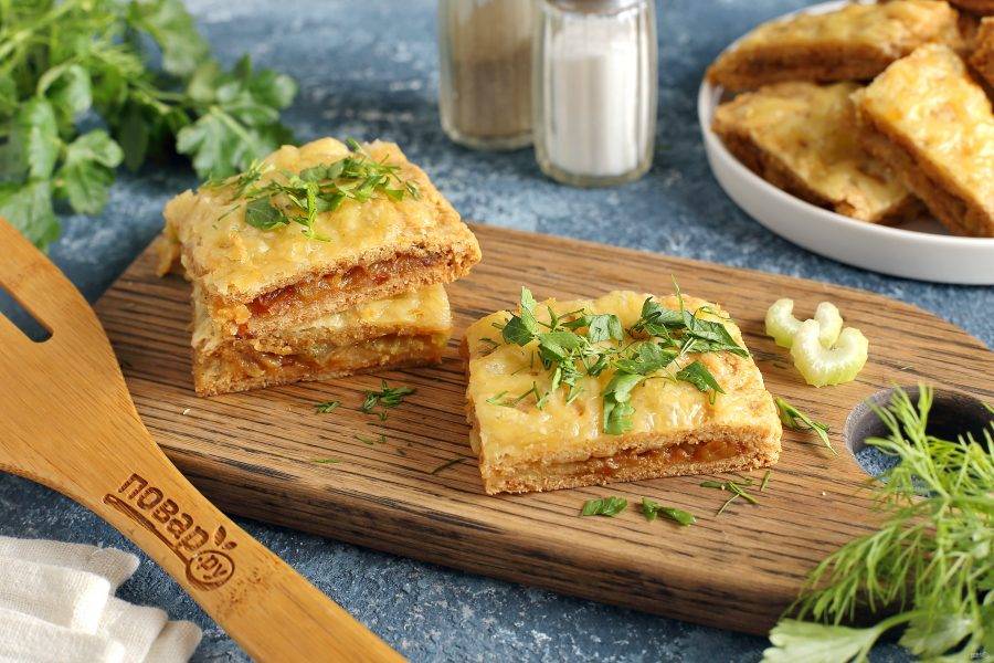 Пирог с сельдереем готов. Разрежьте его на порции и подавайте к столу. Приятного аппетита!