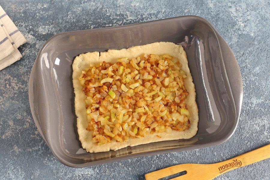 Сверху равномерно распределите начинку, немного отступив от краев.