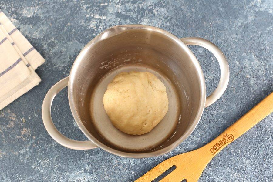 Замесите тесто, соберите его в шар, заверните в пищевую пленку и уберите в холодильник на 30 минут.