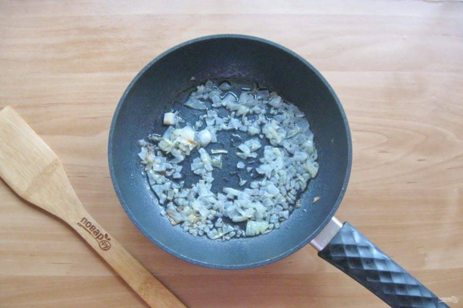 Приготовьте начинку для пирога. Репчатый лук очистите, помойте и мелко нарежьте. Выложите в сковороду с подсолнечным маслом.