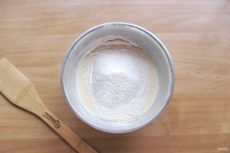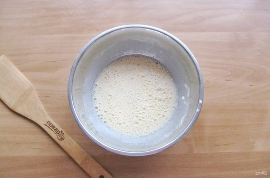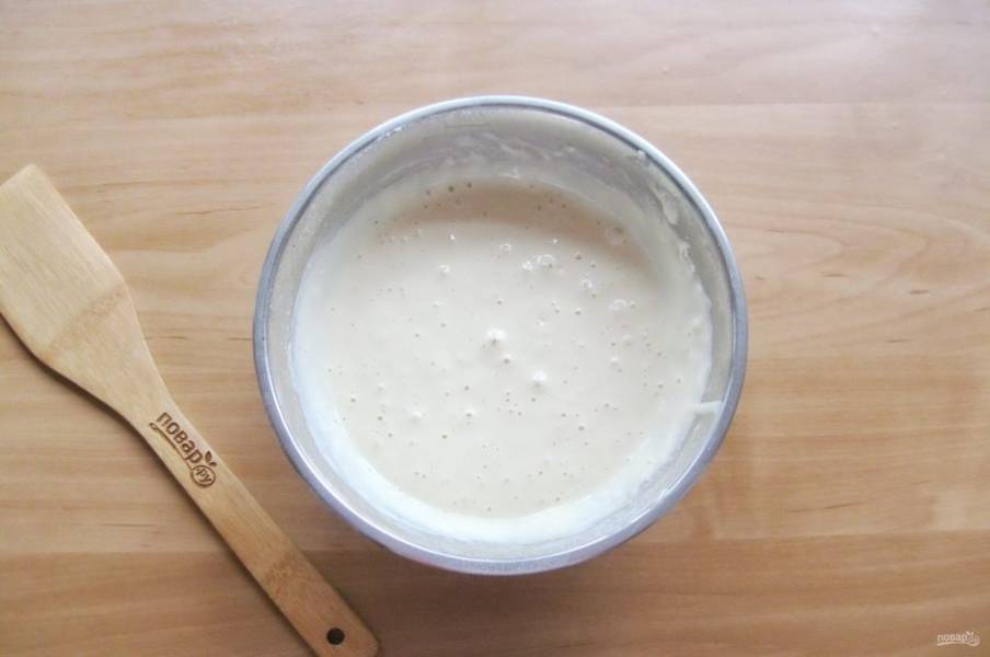 Перемешайте ингредиенты теста. Оно должно быть по консистенции, как на густые оладьи.