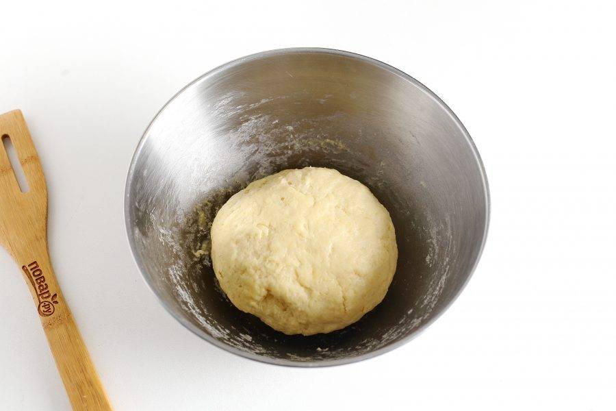 Замесите тесто (если муки маловато, то можно добавить еще 1-2 ст.л.). Соберите тесто в шар, заверните в пленку и уберите в холодильник на 30 минут.