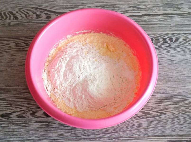 Взбейте масло с сахаром, добавьте яйца. Еще раз хорошо взбейте массу.