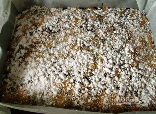 Выпекаем пирог в разогретой до 180 градусов духовке примерно 50 минут. Готовый пирог посыпаем сахарной пудрой.