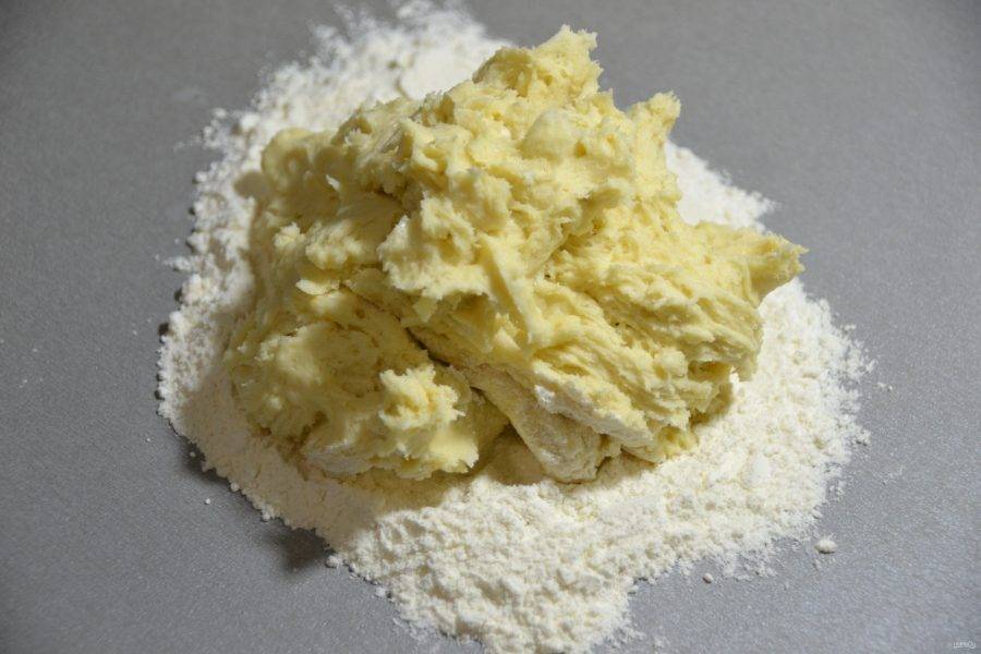 Выложите тесто на стол, присыпанный остатками муки и продолжайте вымешивать тесто руками.