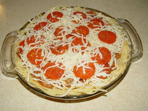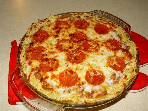 Оригинальный рецепт итальянской пиццы с основой из спагетти.