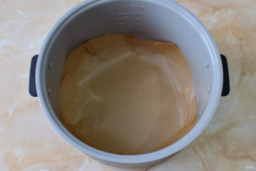 Дно мультиварки рекомендую застелить кулинарным пергаментом. Если вы уверены в своей чаше, то можно просто смазать её растительным маслом.