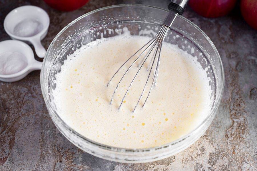 Залейте к яичной смеси молоко и перемешайте.