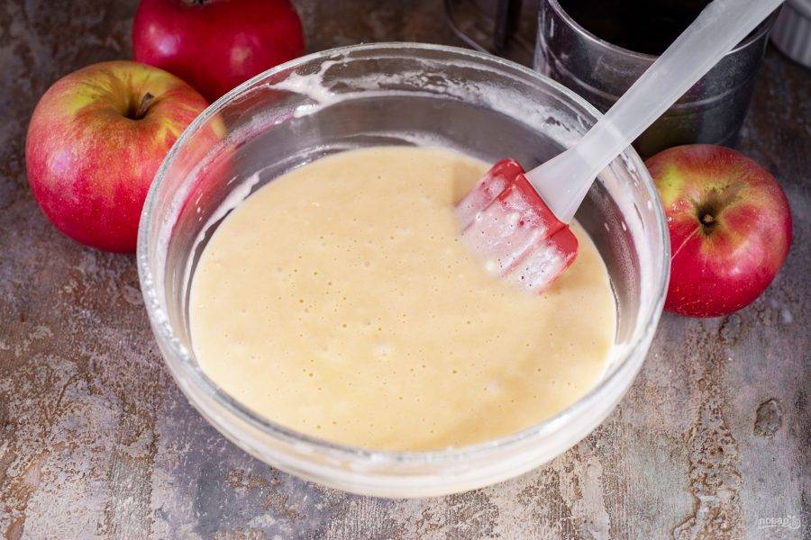Аккуратными движениями лопатки вмешайте сухие ингредиенты до получения однородного, без комочков, воздушного теста.