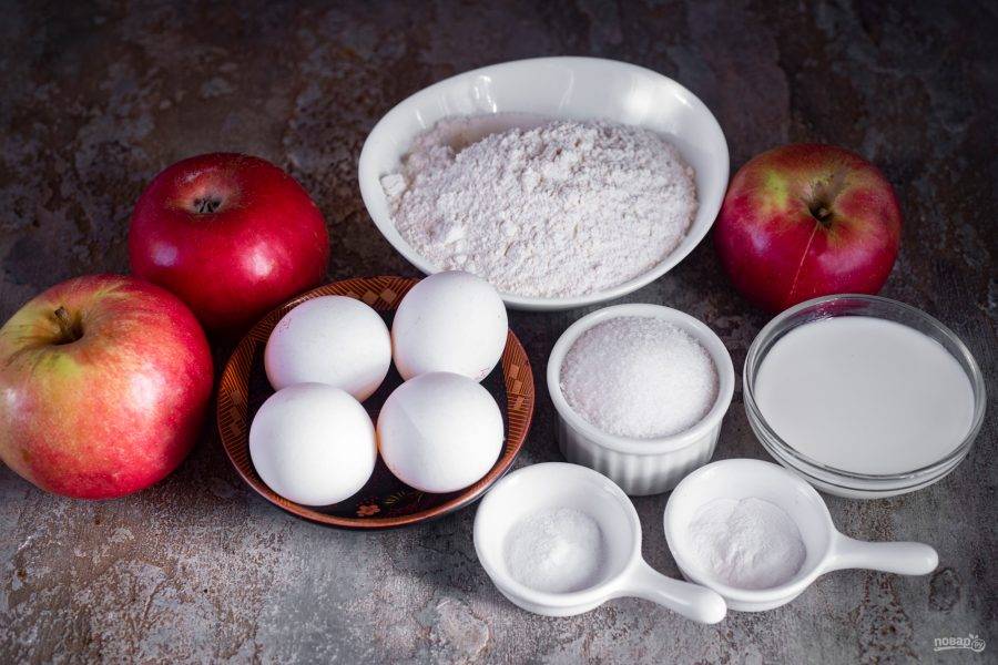 Необходимые для приготовления продукты выложите на стол. Тщательно вымойте яблоки.
