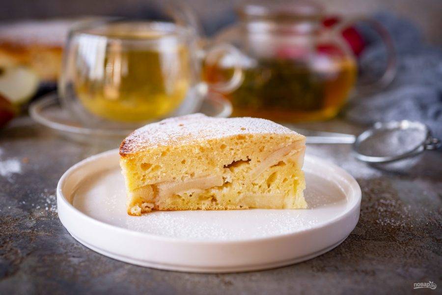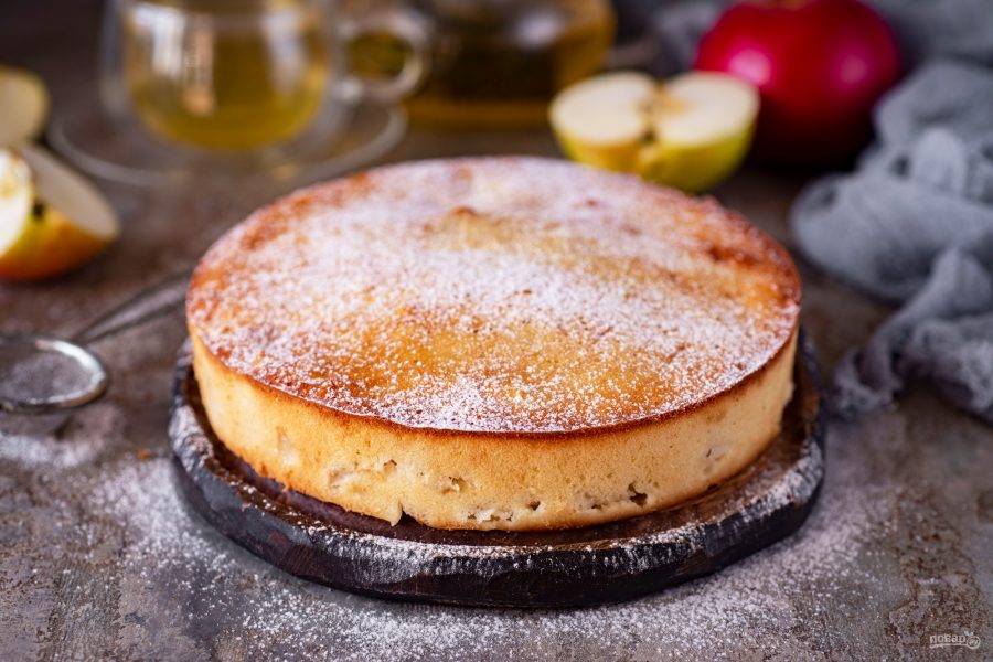 Готовый пирог охладите, чуть присыпьте сахарной пудрой и подавайте к столу.