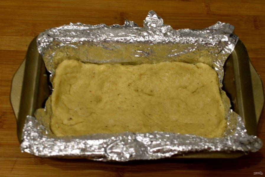 Выложите тесто в подготовленную форму (лучше разъемную) ровным слоем. Наколите и запеките в разогретой до 200 градусов духовке до легкой корочки.