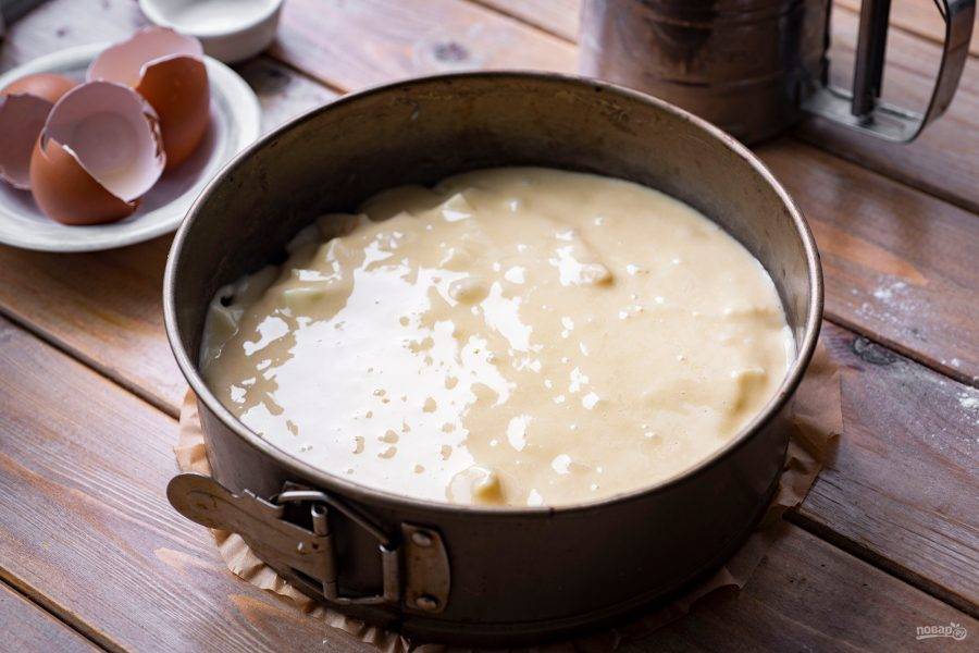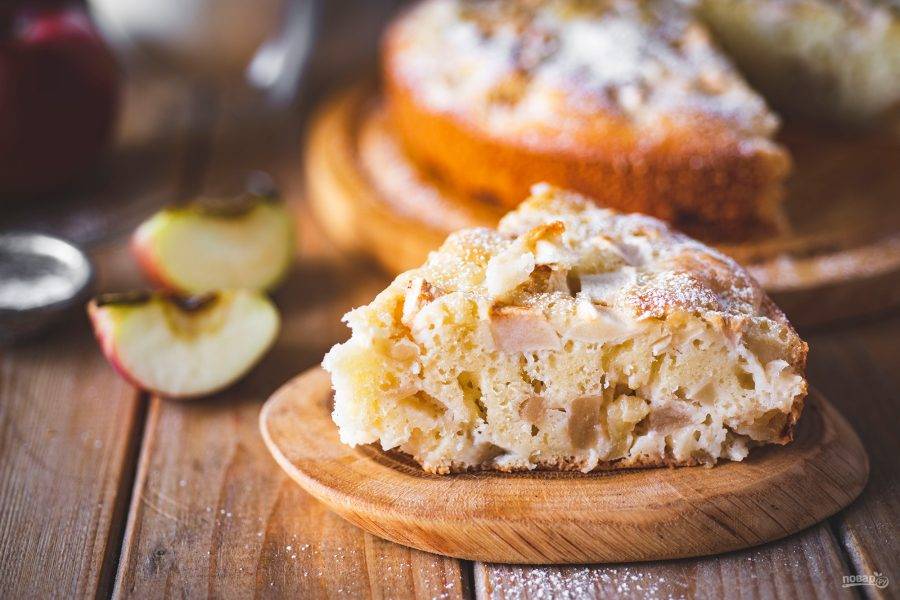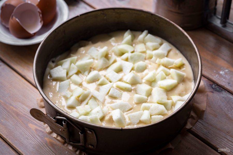 По тесту распределите оставшуюся часть яблок. Выпекайте пирог в уже разогретой до 180 градусов духовке 30-35 минут.