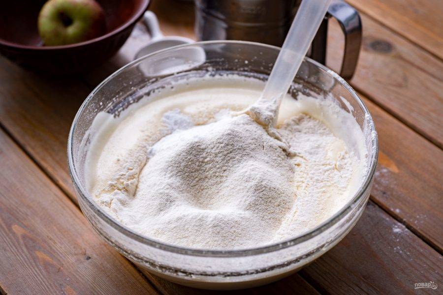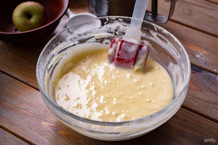 Перемешайте все лопаткой до получения однородного, воздушного, достаточно текучего теста.
