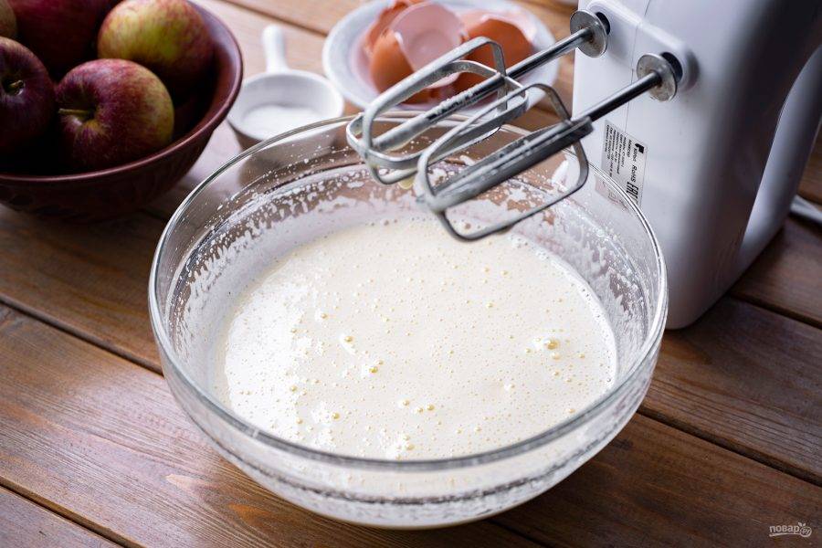Миксером взбивайте эти ингредиенты до получения пышной смеси, я взбивала 3 минуты.