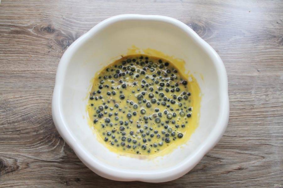 Очень аккуратно перемешайте чернику до равномерного распределения ягод в тесте.