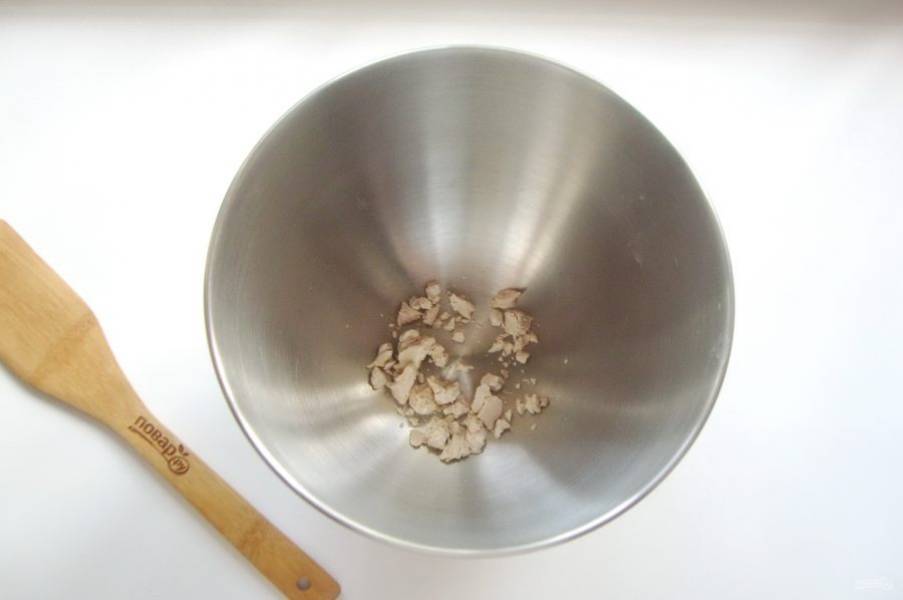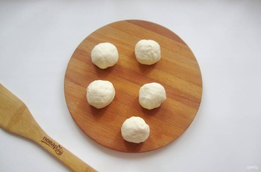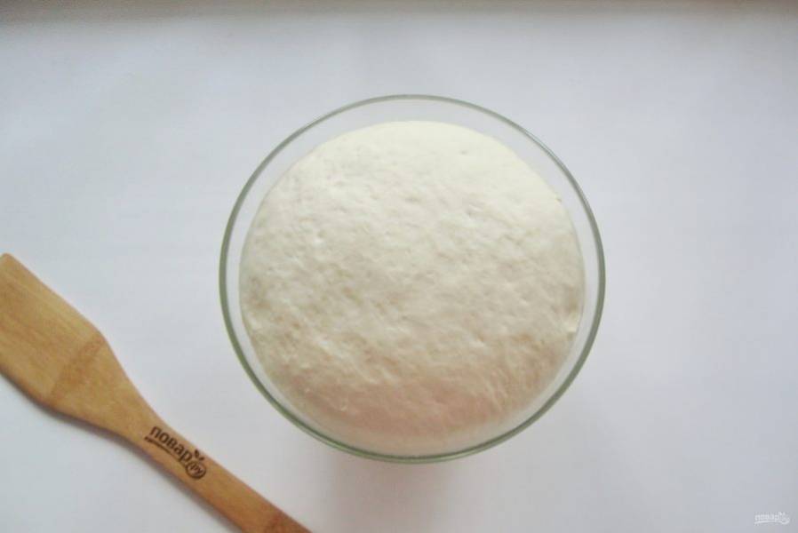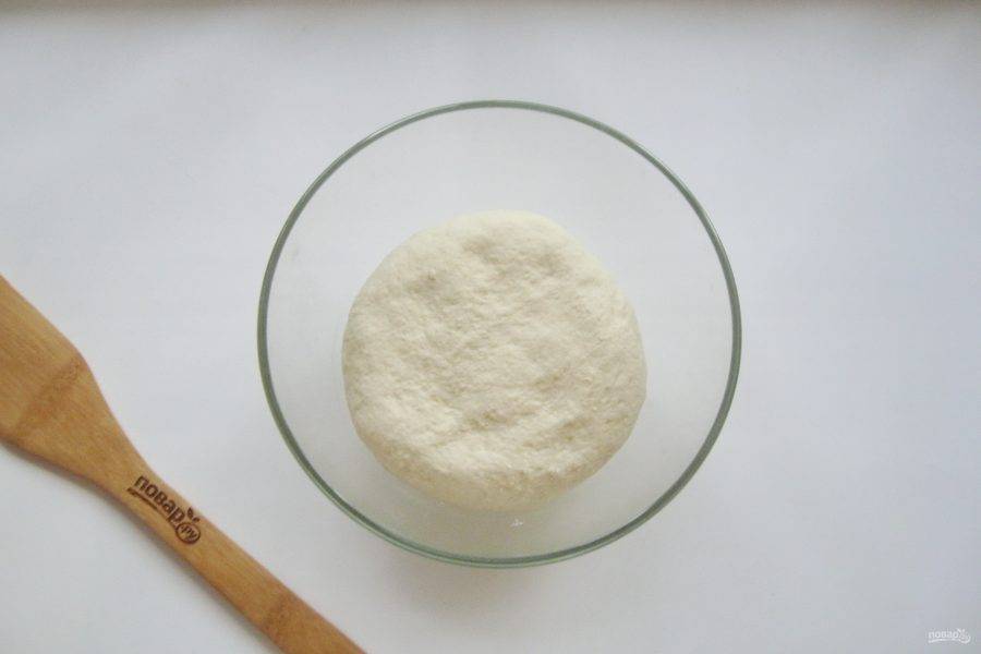 Замесите тесто, не липнущее к рукам. Выложите в миску, накройте пищевой пленкой и поставьте в теплое место.