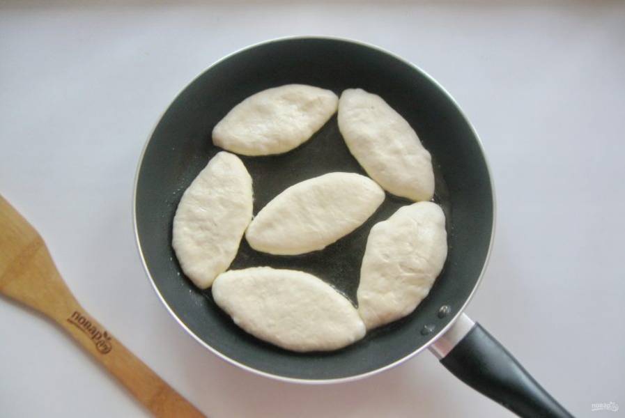 Жарьте пирожки на огне чуть ниже среднего до золотистого цвета.