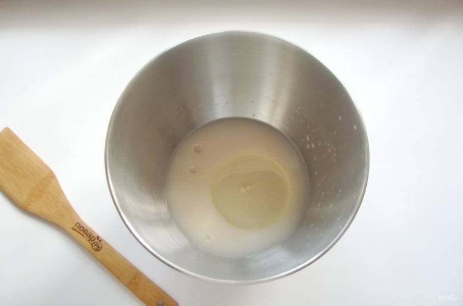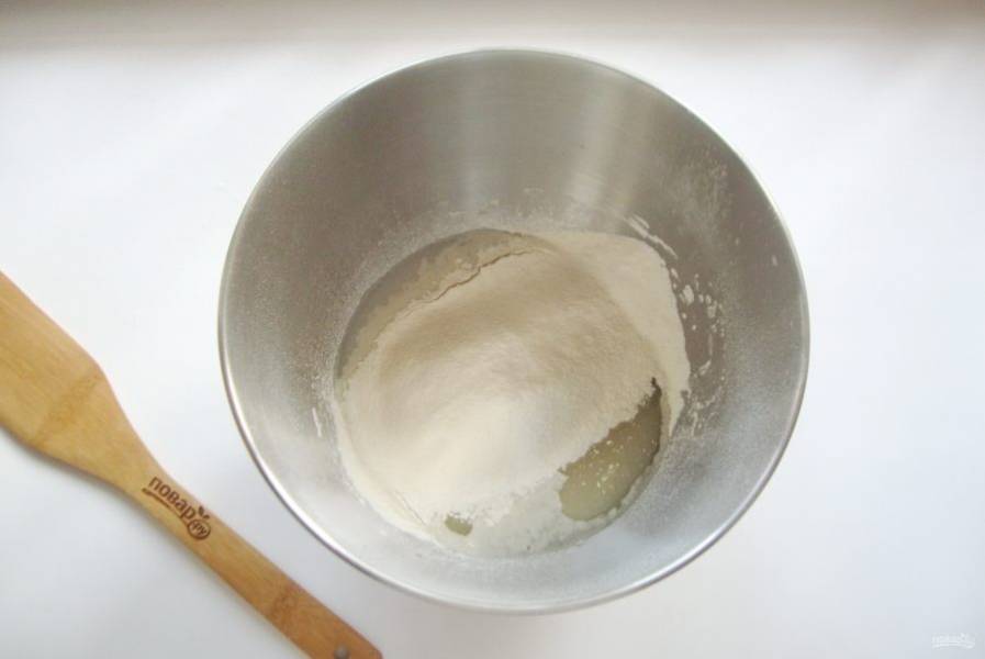 Налейте подсолнечное масло, добавьте соль и сахар.