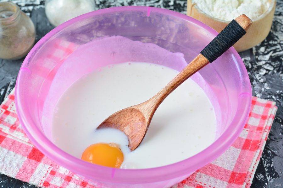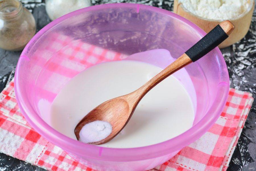 Всыпьте в кефир комнатной температуры пищевую соду.