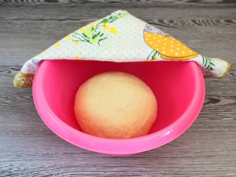 Готовое тесто получится мягким, податливым и не липнущим к рукам. Округлите тесто, положите в чашу, накройте полотенцем и оставьте на 30 минут при комнатной температуре.