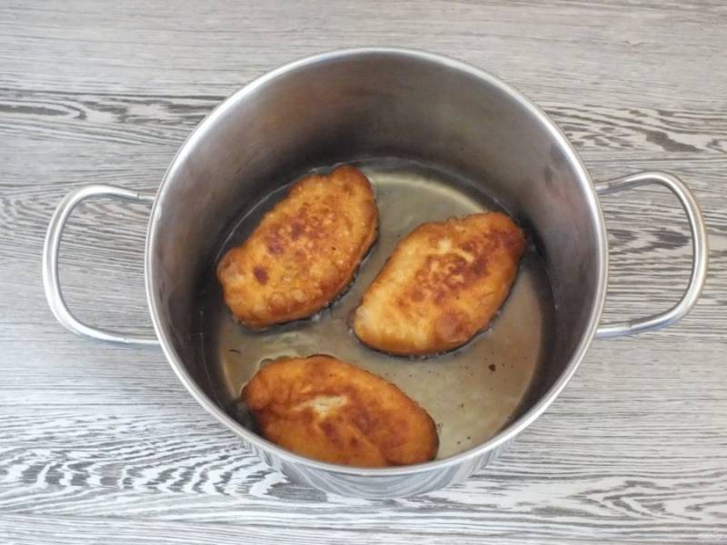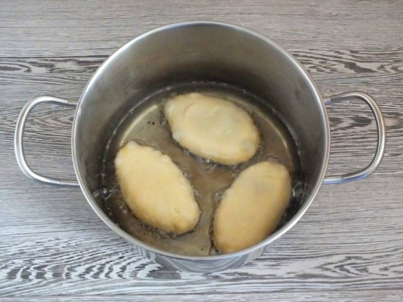 Разогрейте растительное масло и обжарьте пирожки на умеренном огне с двух сторон. В среднем с каждой стороны по 4 минуты.