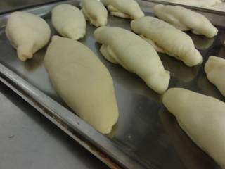 Перед тем, как ставить в разогретую до 200 градусов духовку, смазать размешанным с водой яйцом. Выпекать 10-15 минут до красивого цвета.