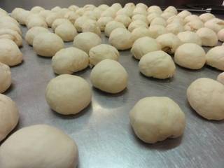 Замешиваем безопарное дрожжевое тесто или покупаем готовое. Разделяем тесто на небольшие , равные кусочки.