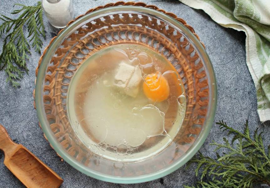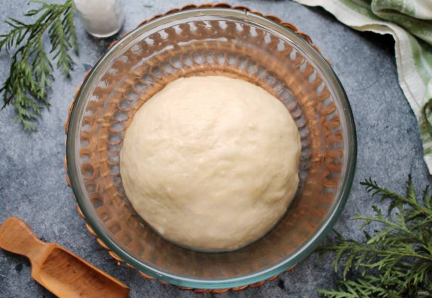 Замесите мягкое, не липкое тесто. Сформируйте из него шар и выложите в глубокую миску, смазанную растительным маслом.