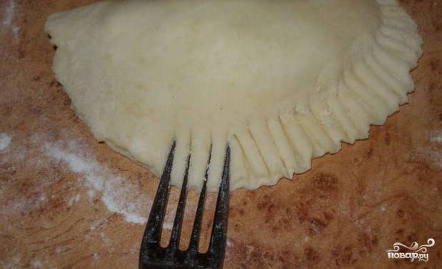Прижмите края пирожков сначала пальцами, а потом — вилкой.