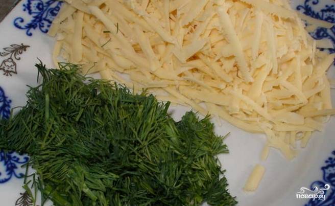 На обычной крупной терке натрите сыр, порубите мелко зелень.