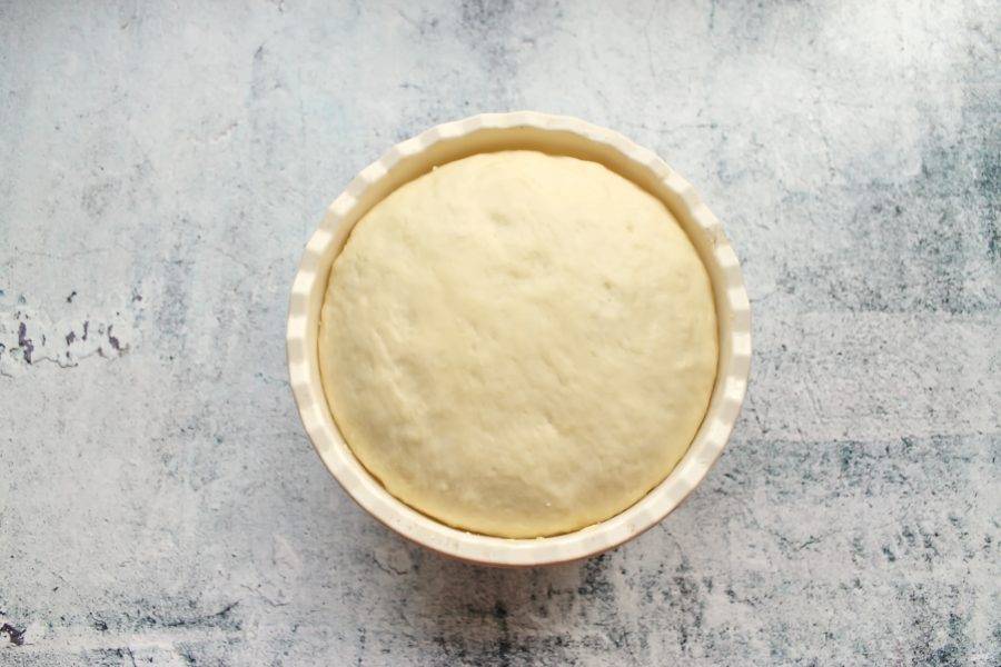 Миску с тестом накройте и поставьте в теплое место на 50-60 минут для подъема.