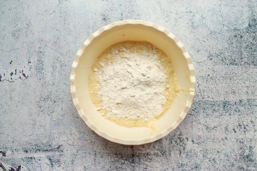 Муку смешайте с разрыхлителем и постепенно добавляйте в миску, замешивая тесто. Вымешивайте тесто в течение 10 минут, сформируйте шар и выложите в глубокую миску, смазанную растительным маслом.