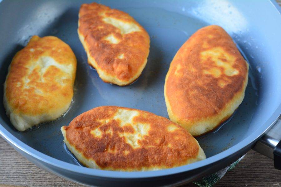 Разогрейте масло в сковороде, сделав средний огонь. Обжаривайте пирожки с двух сторон по 3-4 минуты с каждой стороны.