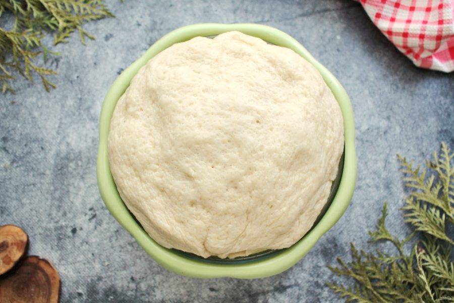 Миску с тестом накройте и поставьте в теплое место на 50-60 минут для подъема.