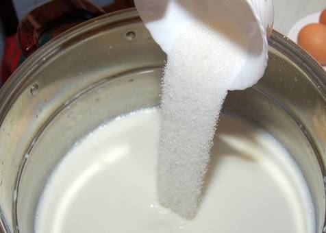 В теплое молоко добавьте сахар, соль.
