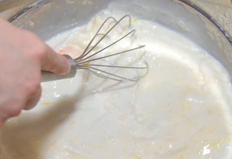 Добавить яйца, взбить венчиком.