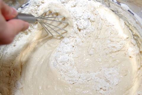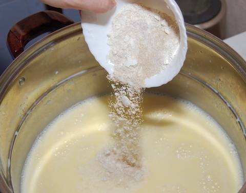 Добавить дрожжи смешанные с мукой.