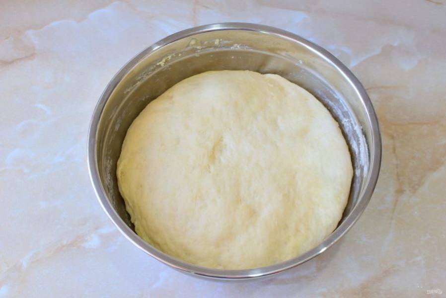 Тесто получается мягкое, пластичное и почти не липнет к рукам. Смажьте руки растительным маслом и немного помните тесто, чтобы оно не брало в себя лишнюю муку. Затем накройте чашу полотенцем и оставьте в теплом месте на 1 час, чтобы тесто подошло.