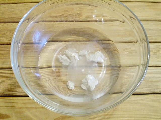 5. Пока варится картофель, можно сделать тесто. Теплую воду соединяем с дрожжами и растворяем их.
