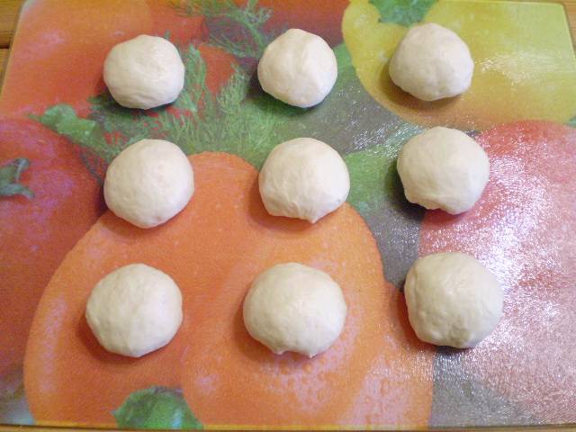 10. Тесто делим на кусочки, катаем шарики размером чуть больше грецкого ореха.