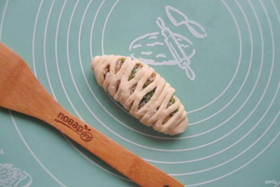 Так поступите со всем тестом и начинкой. Выложите пирожки в форму для выпечки. Дайте им постоять при комнатной температуре 25-30 минут.