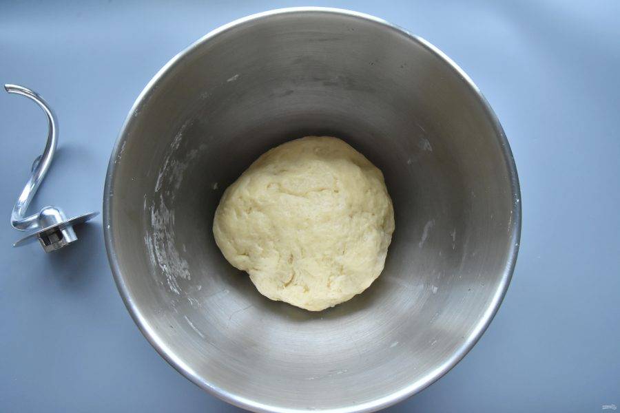 Готовое тесто получается мягким, упругим, не липким. Скатайте тесто в шар. Выложите в миску и накрыв пленкой оставьте в теплом месте, минут на 30-40.