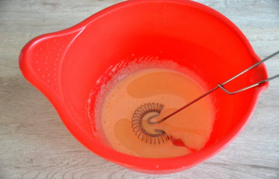 Влейте в желтковую массу 2 ст. ложки растительного масла, смешайте.